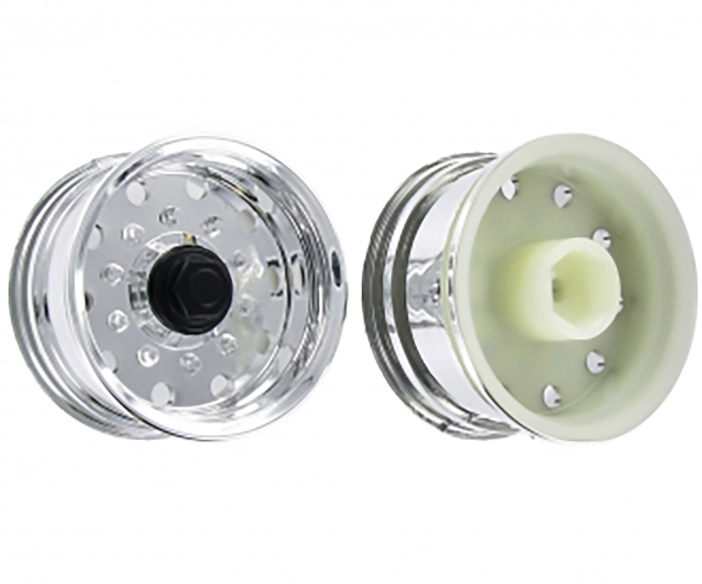 Chromed rims to show european single-wheels on Tamiya trailers. Recommended tyre “Fulda” item 500907012.