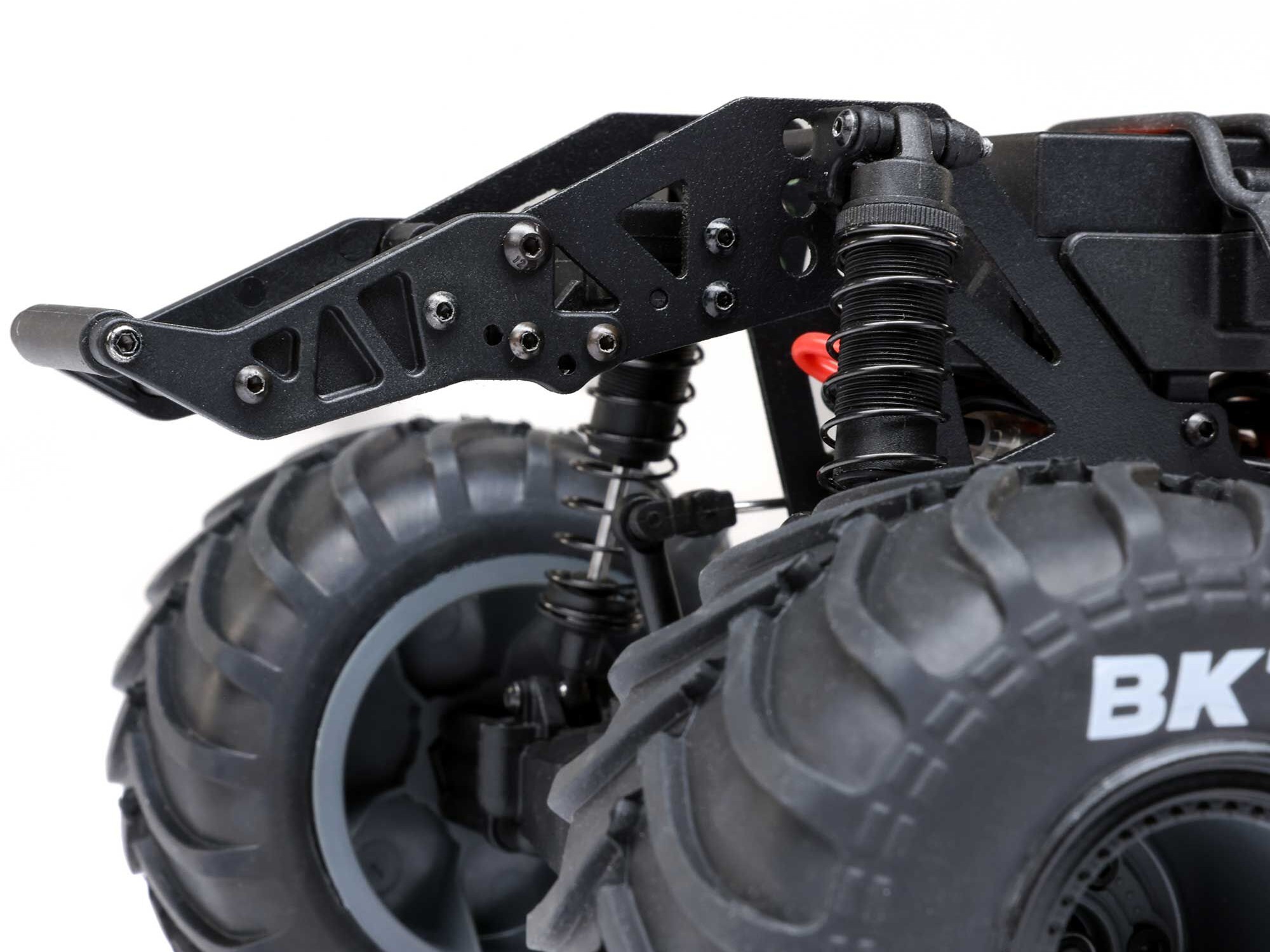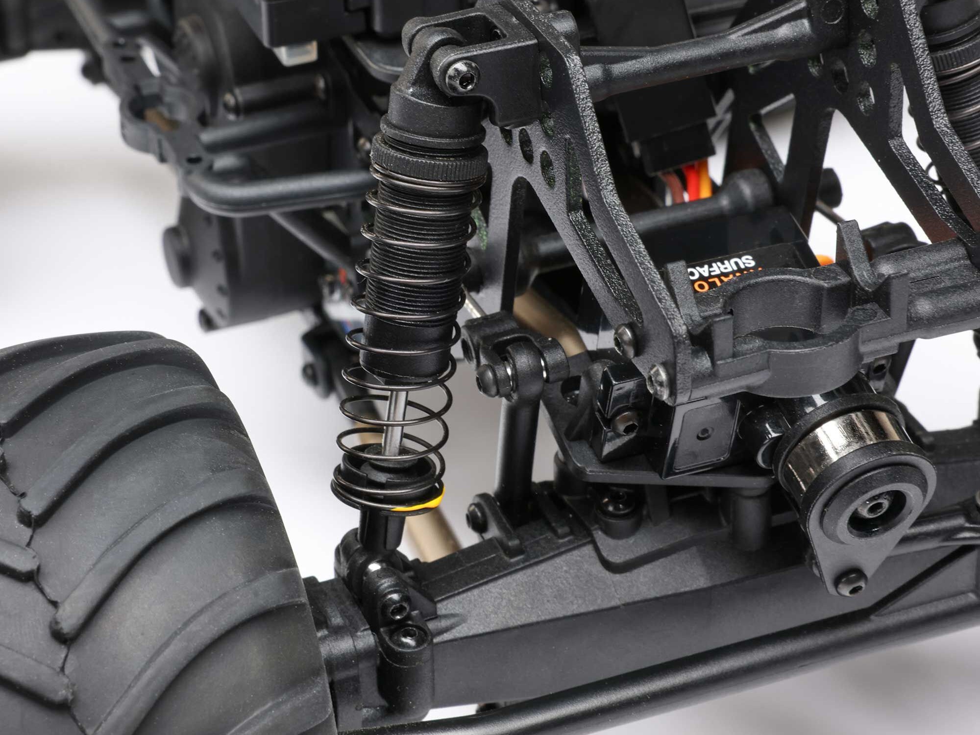 The solid axle 4-link monster truck suspension system provides smooth handling and stability. Sway bars keep the suspension flat and you in control while cornering for improved lap times when racing.
