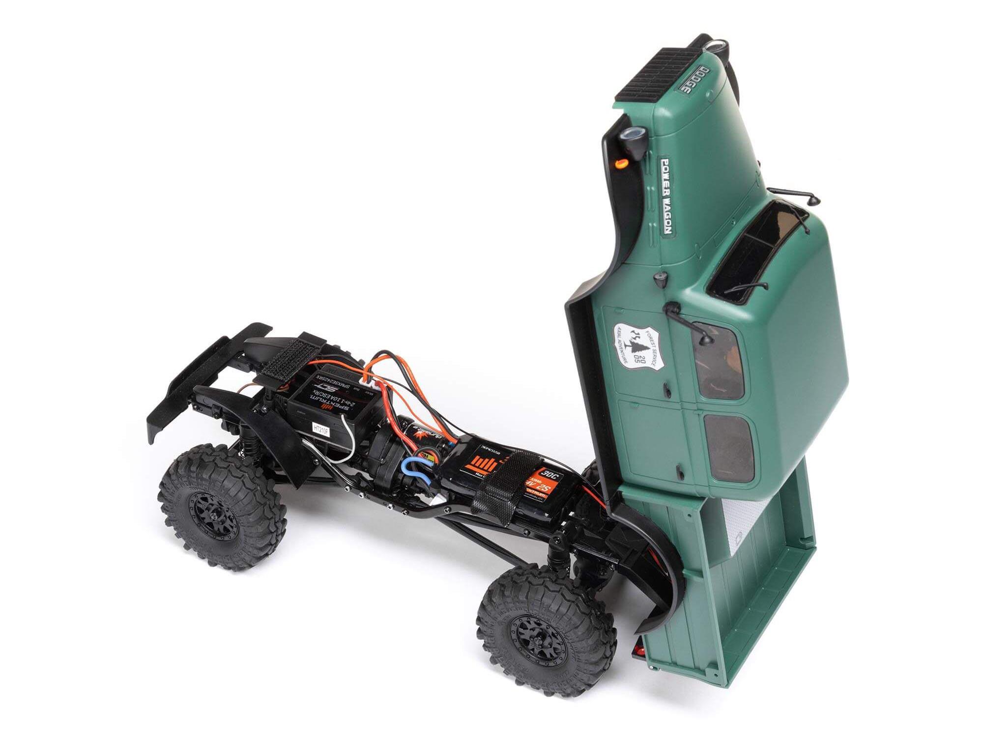 If you're a full-size classic auto enthusiast who's new to RC, you too will be thrilled by this rig's 1/24 scale accuracy and ready-to-run simplicity. Fully assembled and fully equipped, the Power Wagon tops off its muscular chassis with a moulded ABS hard body in a custom 4-door design that's loaded with detail. An overlanding rack and accessories, included for optional installation, add to the realism. It looks ready to take on the wilderness — and it is!