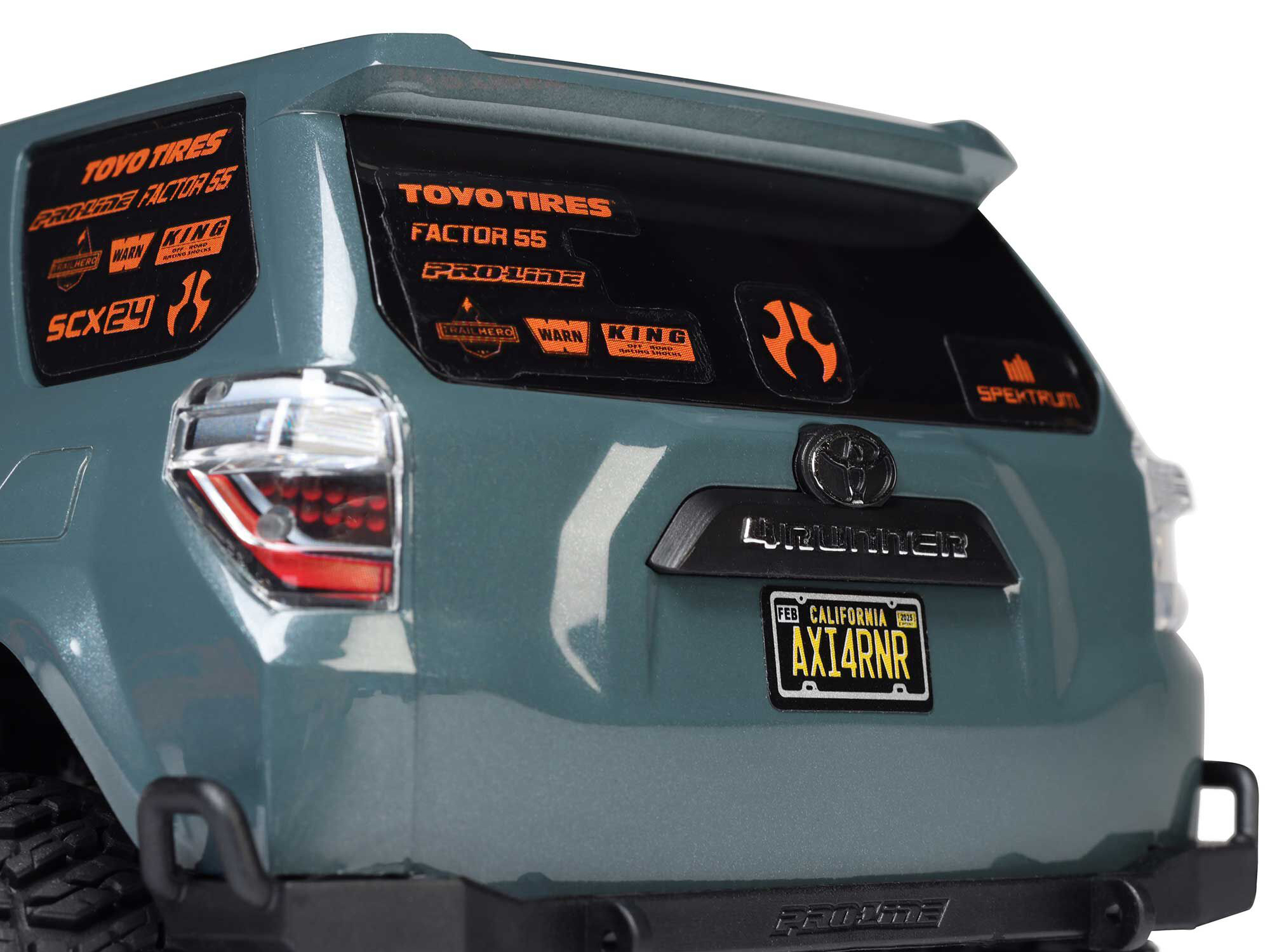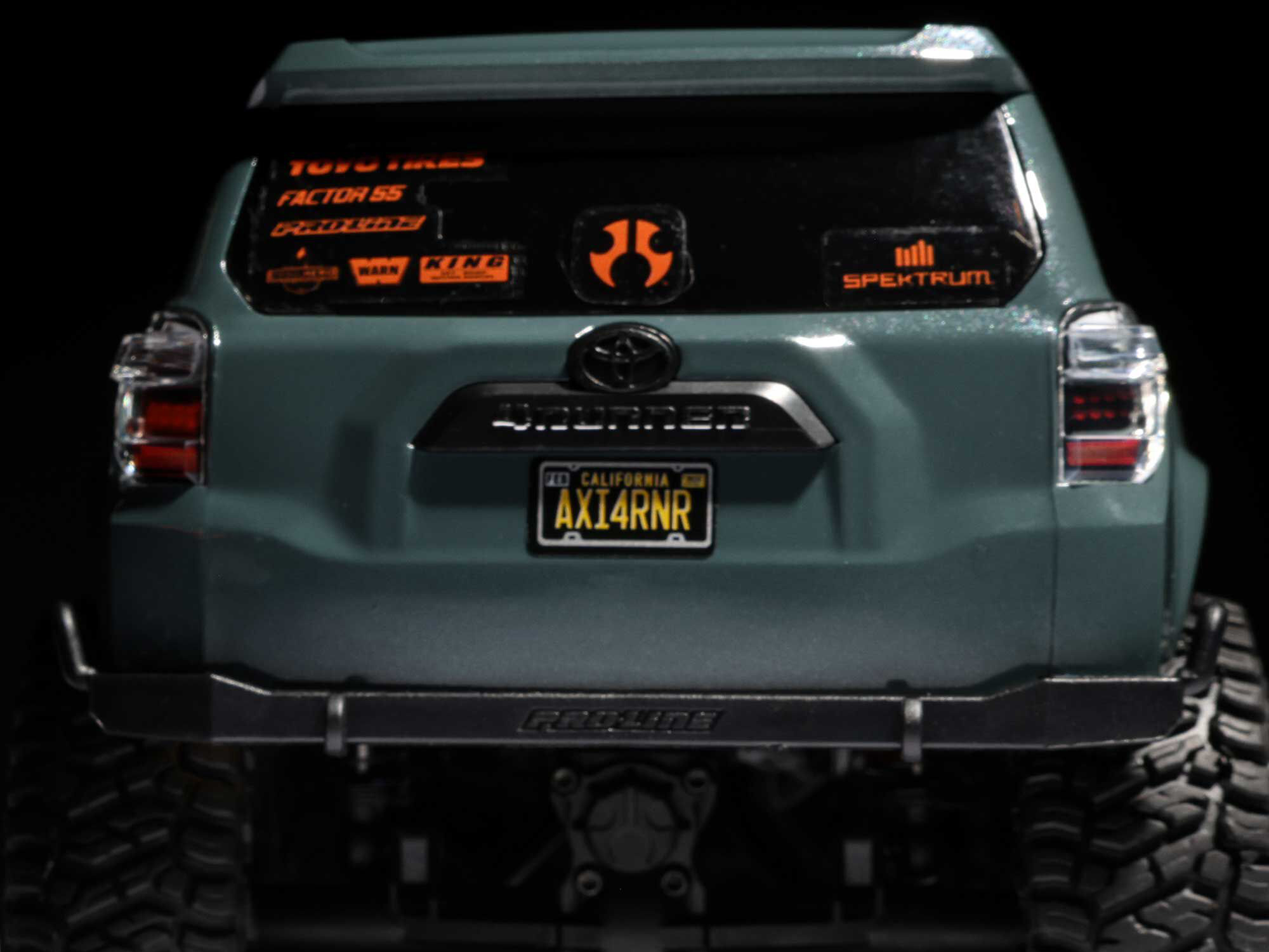 The Axial SCX24 2024 Toyota 4Runner achieves a high level of scale realism with its officially licensed, extra-durable ABS hard body. Even the most die-hard Toyota fans will appreciate its exceptional detail.