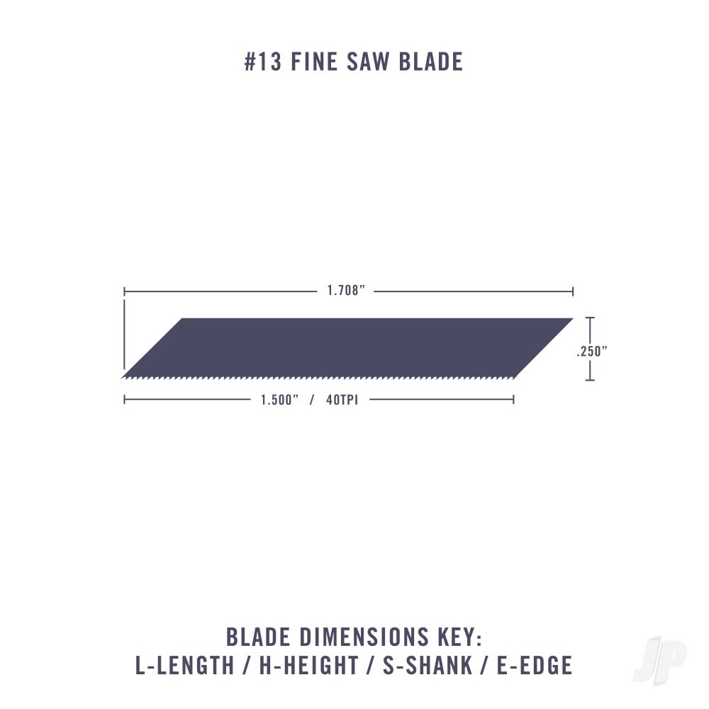 Elevate your crafting and hobby projects with the Excel Blades #13 Fine Saw Replacement Blades (5pcs.). These 3-inch long, durable high carbon steel blades are meticulously crafted to provide exceptionally precise cuts. Whether you’re working with brass tube, solid rod stock, plastic, wood, soft metals, balsa wood, forge world resin, cork, foam, or card-stock, these fine saw blades are your go-to solution. They are also perfect for light to medium-duty crafting tasks like carving pumpkins.