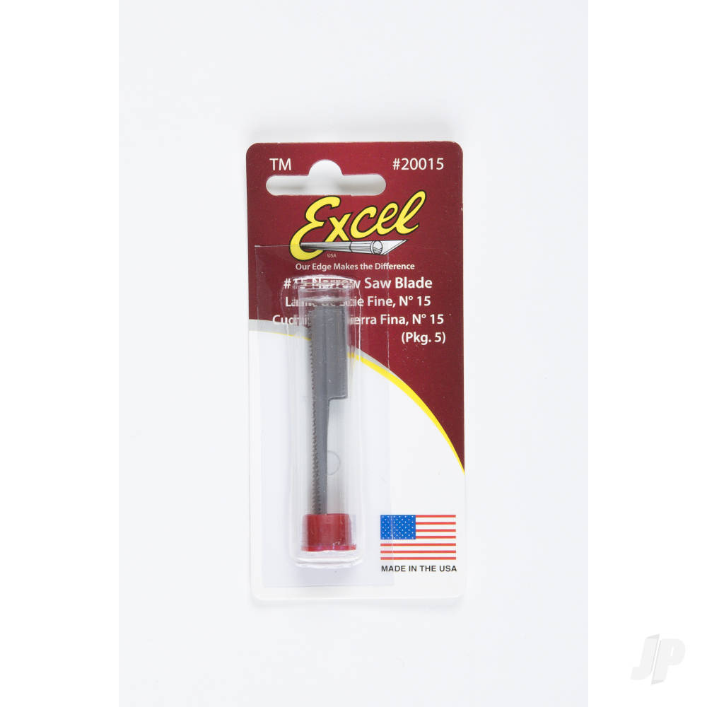 The Excel #15 Narrow Saw Blade is a specialized accessory for your hobby knife handle, offering precise sawing action in confined spaces. This pack of five blades is essential for modellers and crafters needing to make fine, controlled cuts through plastic, wood, and resin components without the bulk of a full saw.