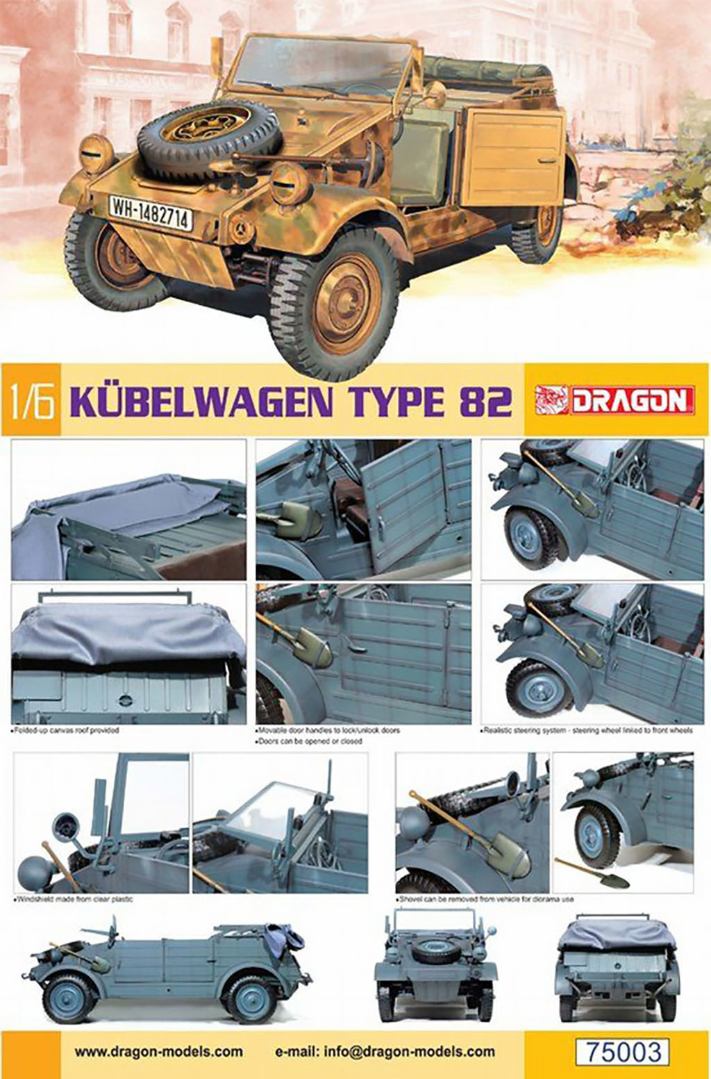 The third item in the new 1/6 scale model kit range is a Ku”belwagen, the diminutive but practical German car that operated in every theatre of combat. This utility vehicle is a famous icon of WWII and modelers will have no trouble in conjuring up paint schemes and scenarios for it. Going into mass production in February 1940, the four-door Ku”belwagen Type 82 was 300kg lighter than the American Jeep (despite being more than a foot longer). When Volkswagen ceased production at the close of WWII, a total of more than 50,000 had been built for the German armed forces.