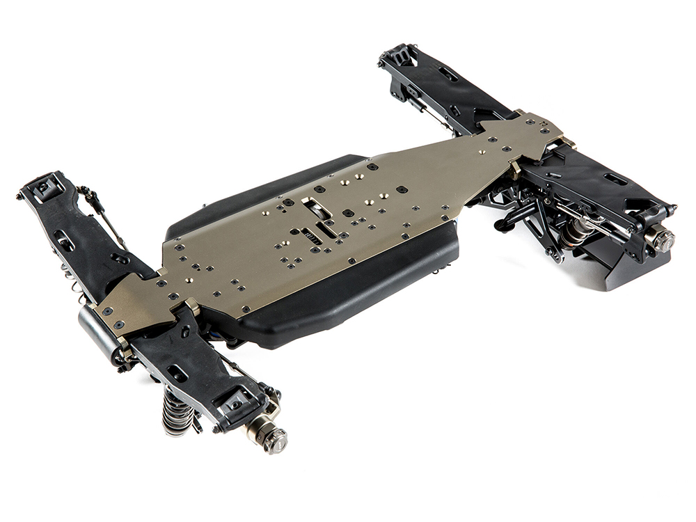 Chassis width has been increased to aid in stability and give the truggy a more neutral feel as well as equalized side to side for equal torsional flex and thinned down to 3mm for weight savings.