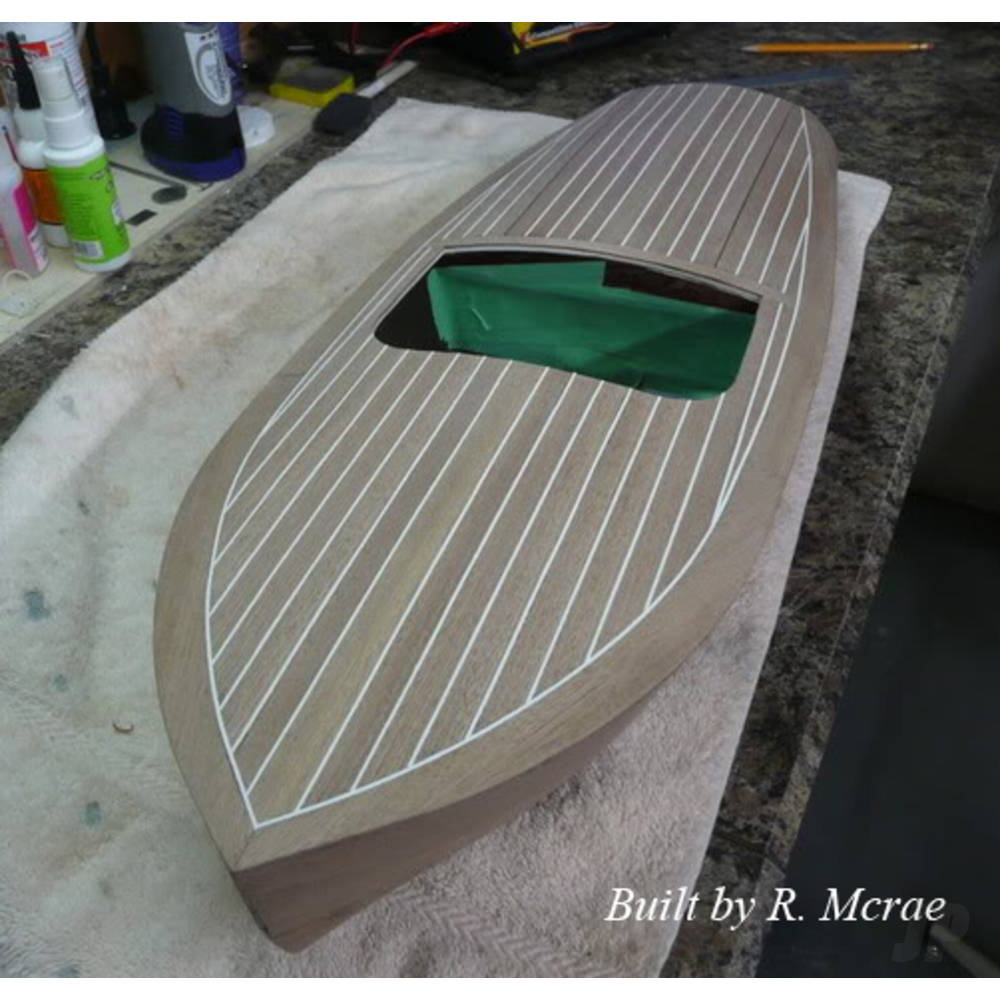 This kit is very similar in construction to our 19″ Racing Runabout, kit #1249, in that it utilises the popular expanded PVC and mahogany double planking method. The new 16″ hydroplane kit includes all the items you have come to expect from a Dumas kit. Step-bystep instructions, flag, decal, chrome plated fittings and laser cut parts which we started using in our #1249 Racing Runabout kit.