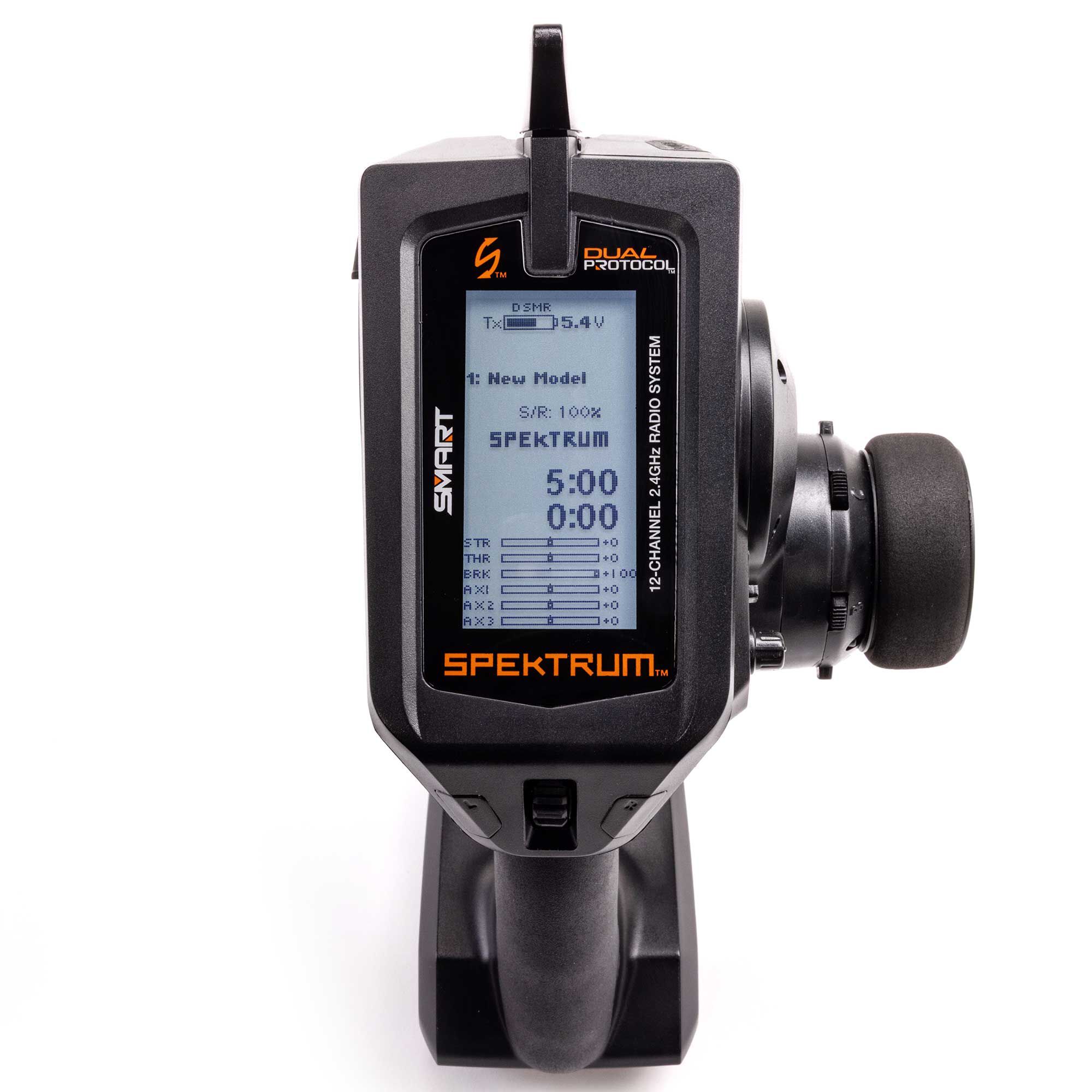 If you’re a racer, basher or boater who’s looking for a radio with a “custom” feel and next-generation capabilities, look no further than the Spektrum™ DX Pro+ 12-Channel DSMR+® transmitter. It offers a staggering list of advanced features that includes the virtually unlimited possibilities 12-channel control offers.