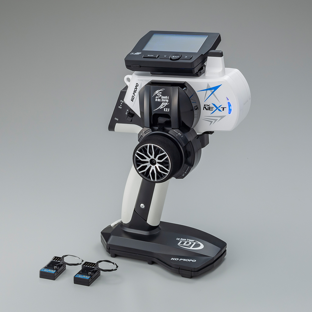 EX-NEXT supports “XT Telemetry mode” that uses 2-way communication. When “4S series servos” that support serial compatible are connected to the B/S port in the new receiver KR-420XT, you can use “REAL TIME ICS”. So, you can easily change parameters of servos from the transmitter without accessing the car directly. Setting your car with more freedom and more detail without compromise.