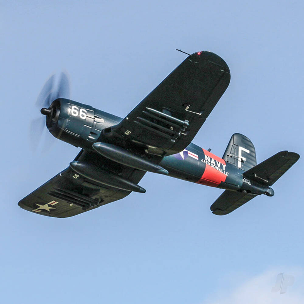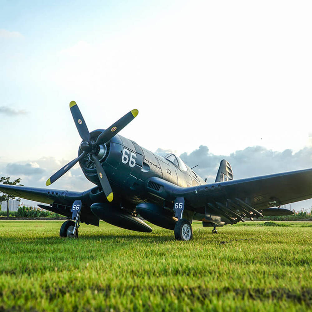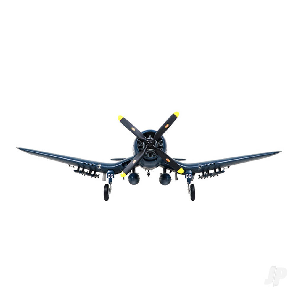 FMS is committed to producing the most visually accurate warbirds on the market. The Corsair V3 includes an array of realistic features, such as pitot tubes, missile racks, auxiliary fuel tanks, aerials, exhausts, and a detailed pilot figure. The large cockpit is fully adorned with dials and levers, and the hand-painted pilot completes the authentic look. A chrome spinner and reinforced nylon four-blade propeller add to the striking appearance while contributing to its nickname, Whistling Death.
