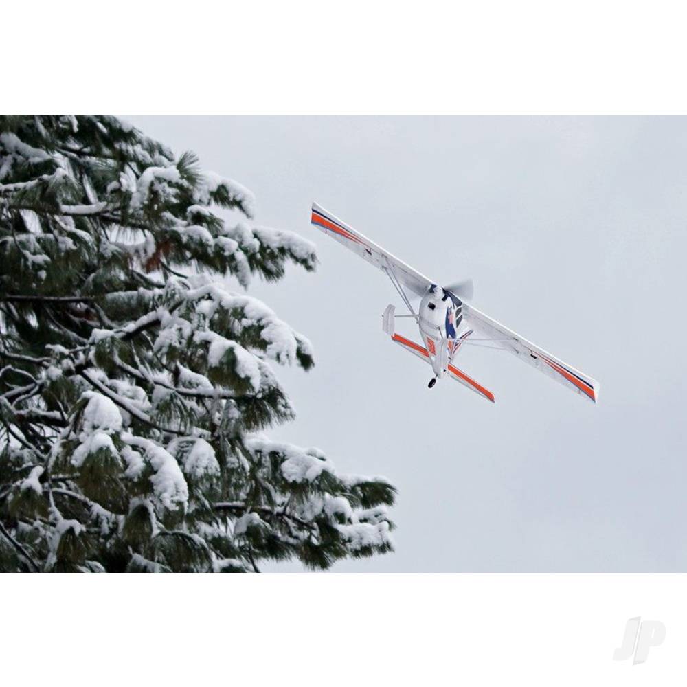 Less time spent assembling means more time in the air. Supplied with three complete sets of landing gear, the Kingfisher is ready to operate in almost any environment. It includes an oversized wheel set for grass fields and gravel runways, a float set for water landings, and skis for snow or icy conditions. The aircraft is also easily upgradable, with an optional electric tow hook available for banner or glider towing. In addition, the Kingfisher is FPV-ready with a dedicated equipment bay.