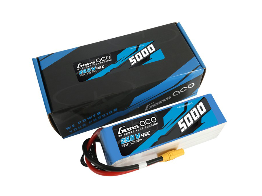 Gens ace lipo 5000mAh 7S1P 45C lipo battery pack has Remarkable stacking technology which enables single cell capacities of 5000mAh. With High discharge performance and high energy density, Gens ace batteries provide high quality, reliable power for Scale plane 14S setup.