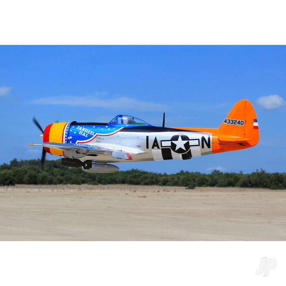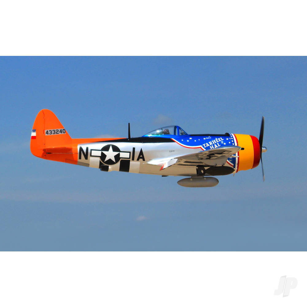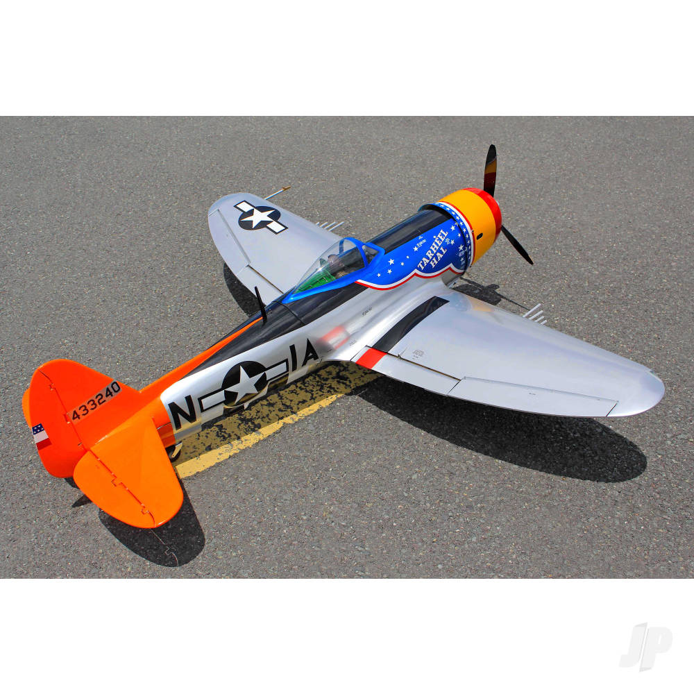 Bedecked in beautifully applied Oracover, Seagulls new Thunderbolt has not only been carefully constructed and diligently covered, its profile is pretty much spot on and, where scale detailing is concerned, its going to make you smile. Flaps, nav lights, bombs and drop tank, dummy radial, guns, aerial mast, undercarriage covers and doors and a fully detailed cockpit interior. Truth is, this one really has been produced with the scale enthusiast in mind, right down to its 356th Fighter Squadron colour scheme with authentic markings and nose art. Need more persuading? Take a look at the beautifully engineered 3-piece electric main and tail wheel retract set and tell us, if you dare, that things havent moved on in leaps and bounds since the days of sloppy mechanical systems.