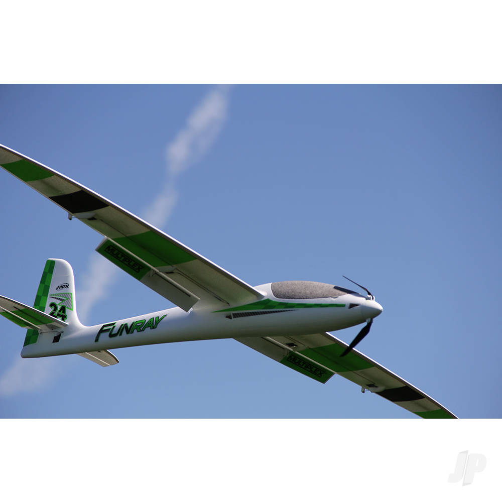 Designing elegant models that look drop-dead gorgeous and fly beautifully is something that Multiplex does really rather well. And if proof were ever needed that its not just fluke, cast your eyes on this 2m span stunner of an all-round electric sailplane-cum-aerobat. Equally at home on flat field or slope, either thermal soaring or cutting precision aerobatic shapes in the sky, this is a model that will appeal across the board and fly in practically anything, all year round. Fast, fun and feature-packed the Funray owes its performance to a state-of-the-art hybrid construction comprising a carefully balanced mix of carbon fibre, stainless steel, aluminium, plastic and crisply moulded Elapor foam. Its outstandingly well produced, neatly decorated and offers all the mixing options flexibility and advantages of a sailplane with a four servo wing.