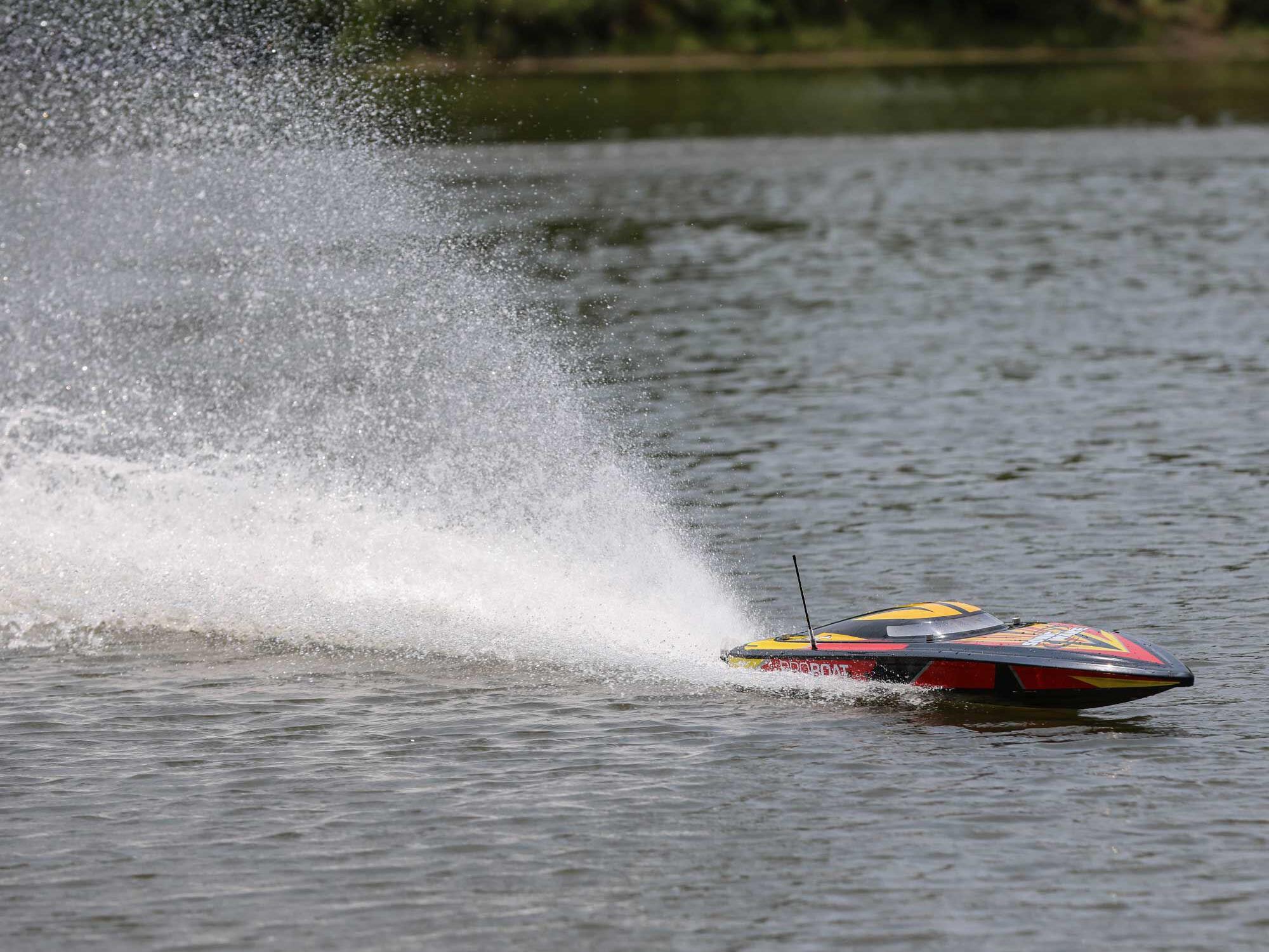 The Pro Boat Sonicwake 36-inch Self-Righting Deep-V has exactly what you’re looking for in a Deep-V design?speed and performance. Plus, it features a self-righting hull with sealing canopy.