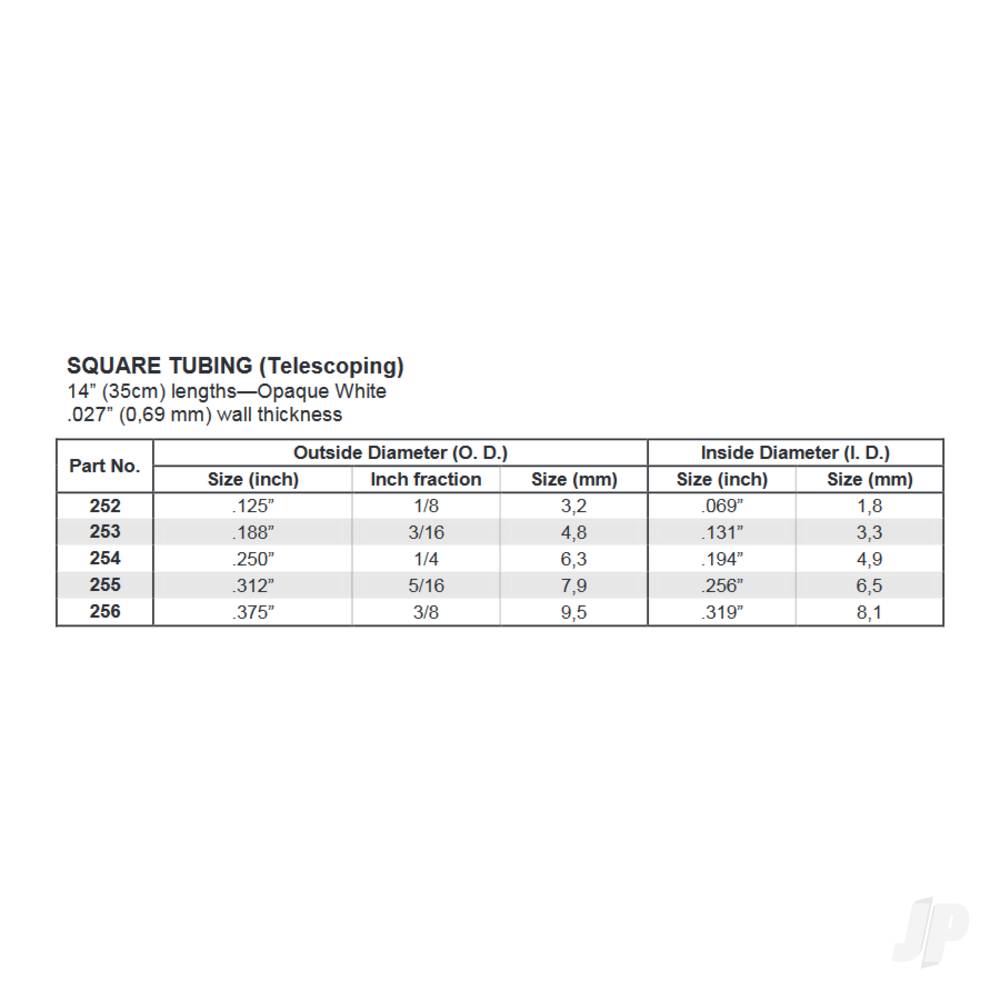 - Tube Size: 3.2mm (.125in), 4.8mm (.188in), 6.3mm (.250in), 7.9mm (.312in), 9.5mm (.375in)