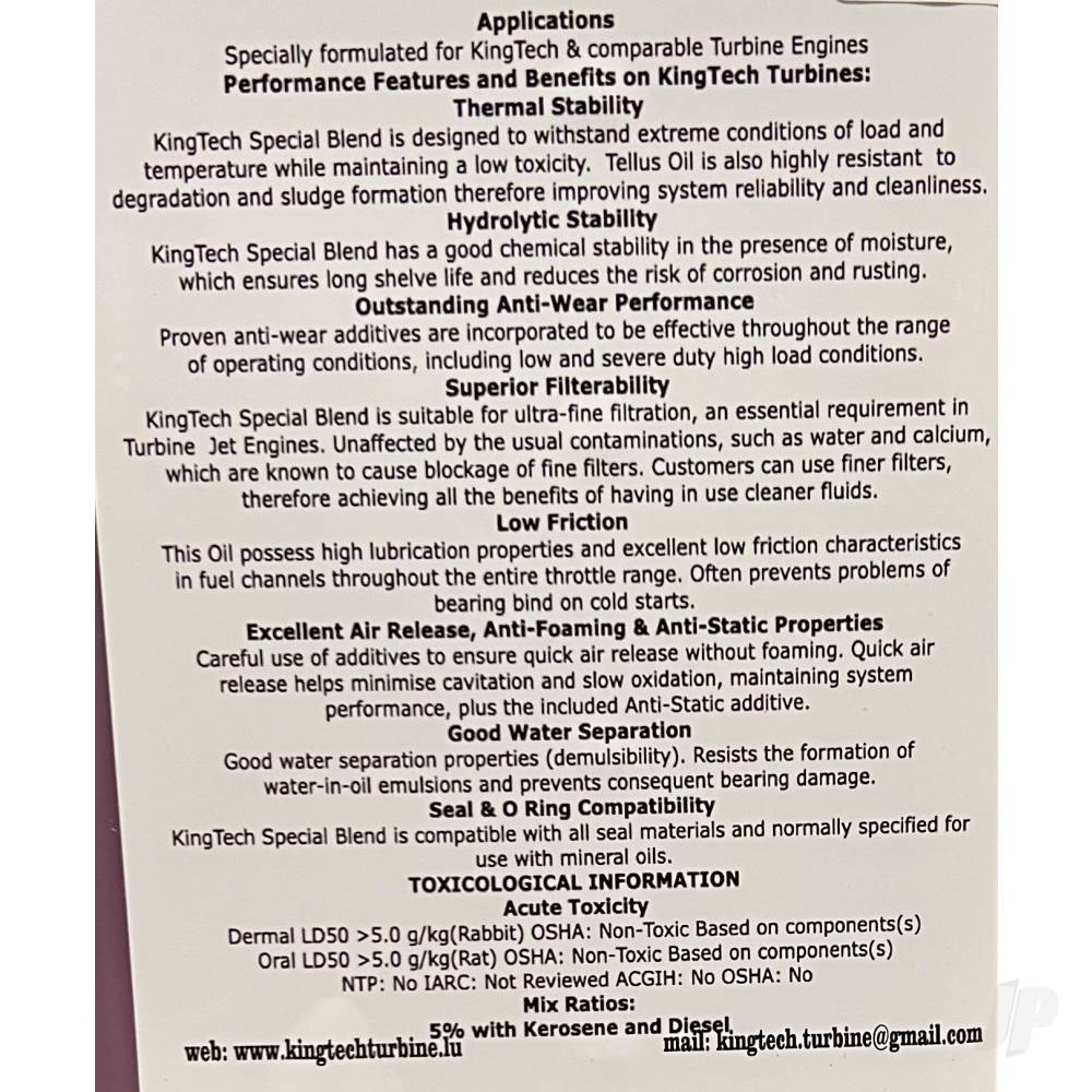 Specially formulated for KingTech and comparable turbine engines.